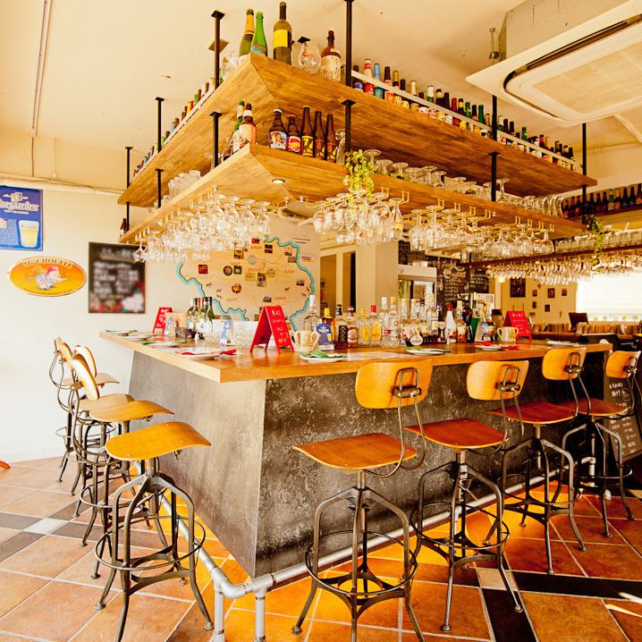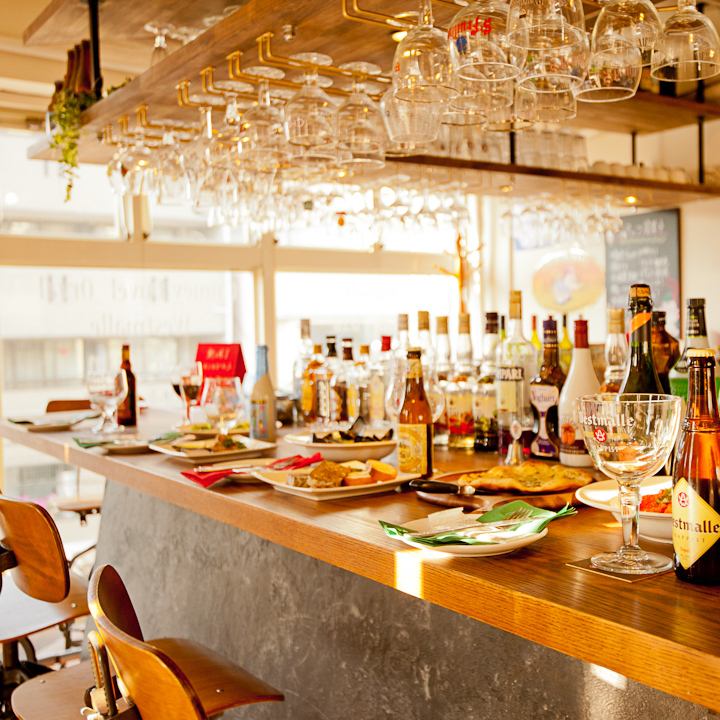 【カウンター8席】◎デート、お仕事帰りに!バルっぽいカウンターはとってもお洒落です。上には見たこともないベルギービール専用グラスがキラキラ☆お一人様にもおすすめ◎スタッフとの距離が近いので、おすすめのビールやタパスなども教えちゃいます♪カウンターならではのお得なサービス♪お料理のサービス致します♪